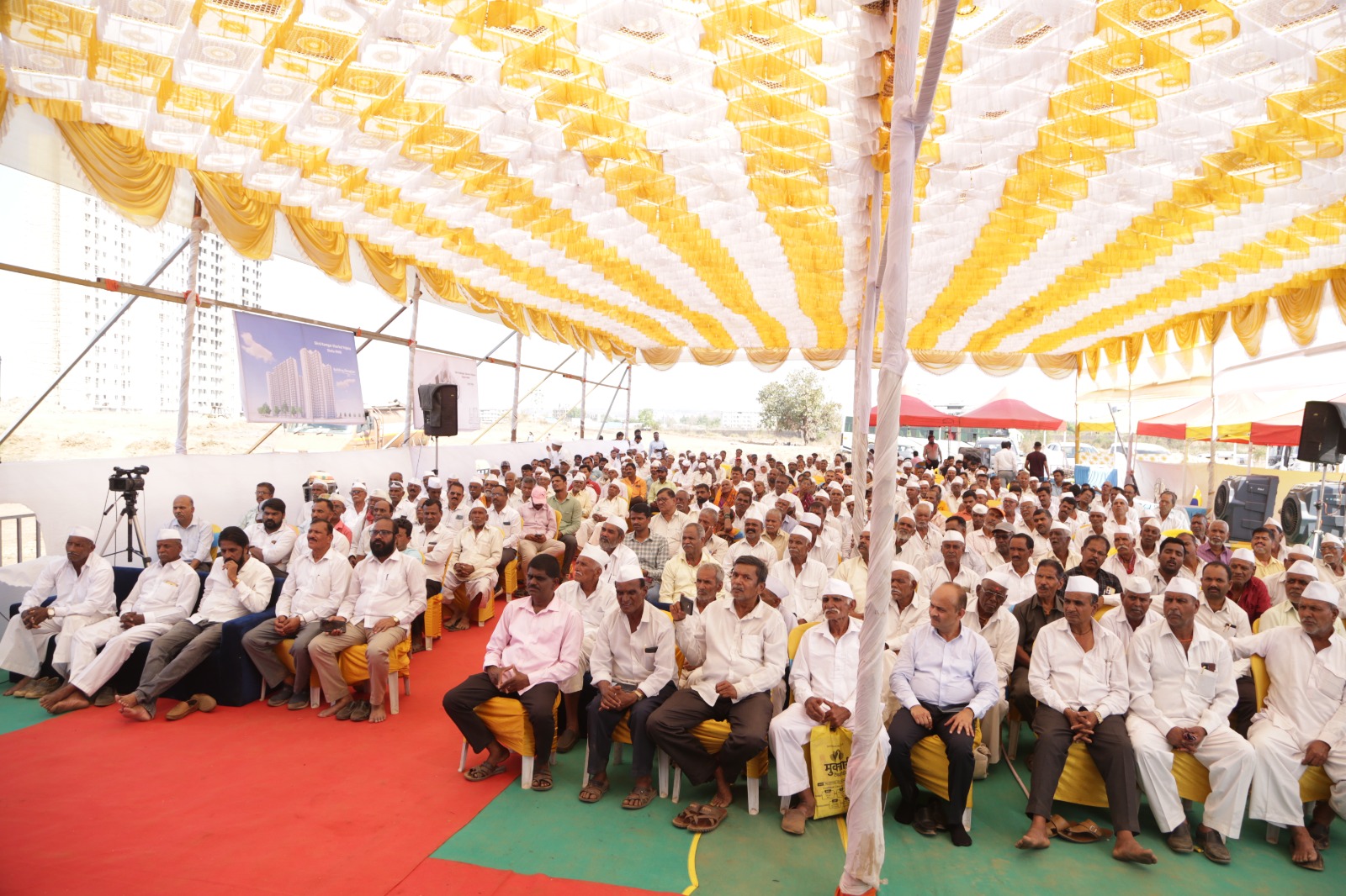 The township will offer 50+ amenities, including a clubhouse, children’s play areas, multiple gardens, a community hall, an Anganwadi, a school, a hospital, a playground, a jogging track, an open gymnasium, and a Nana-Nani Park.